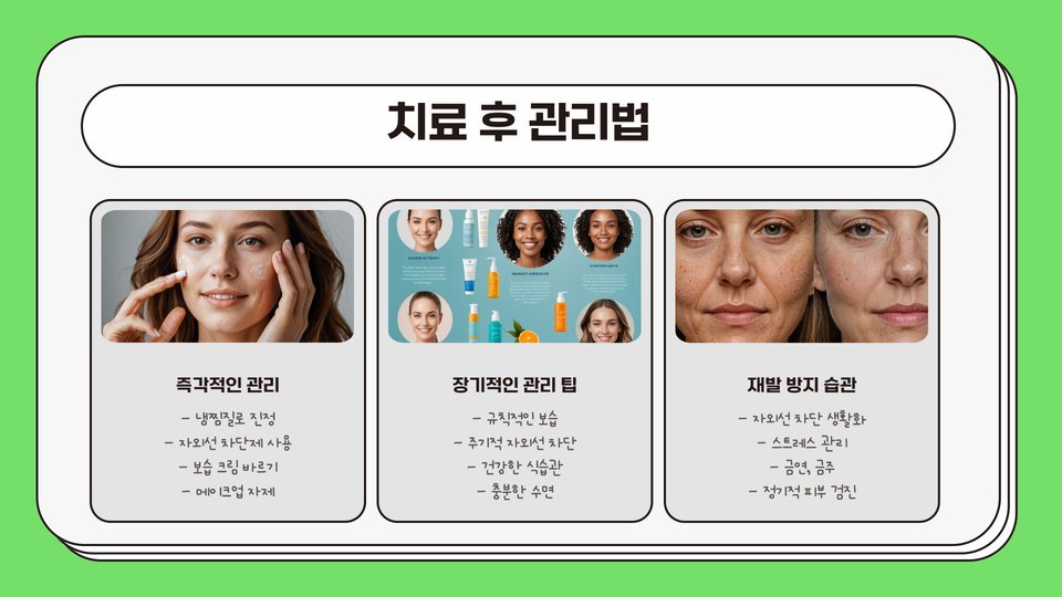 검은반점을 효과적으로 제거한 후에는 지속적인 관리가 필수입니다. 자신의 피부 타입에 맞는 보습제와 자외선 차단제를 사용하는 것은 깨끗하고 건강한 피부를 유지하는 데 큰 도움을 줍니다.