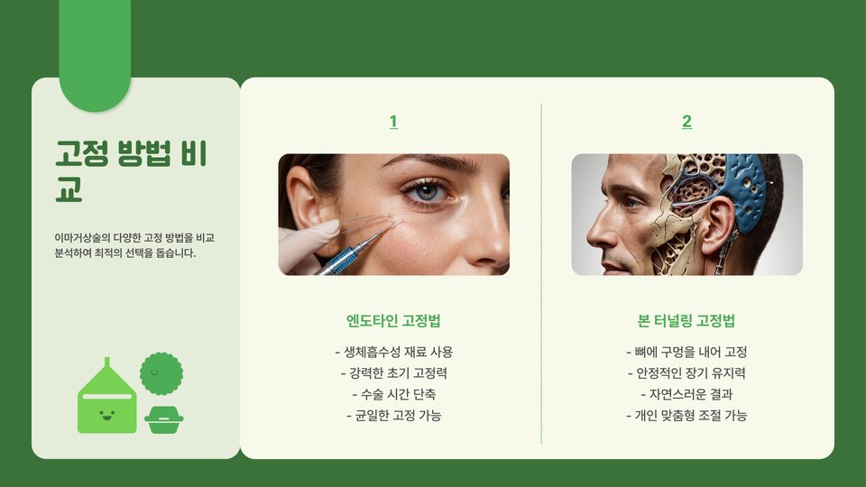각 시술 방법의 특징을 이해하고 자신에게 어떤 방법이 적합한지를 고려해야 합니다. 성공적인 이마거상 시술을 위해서는 전문가와의 상의가 필수적입니다. 그들은 구체적인 상황에 맞는 맞춤형 조언을 제공하여, 만족스러운 결과를 얻을 수 있도록 돕습니다.