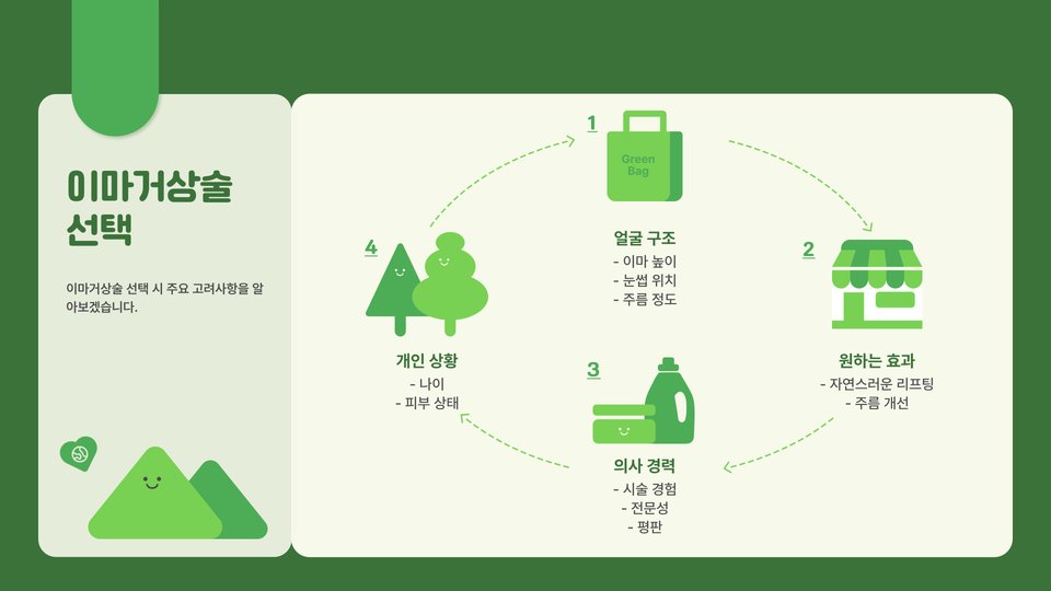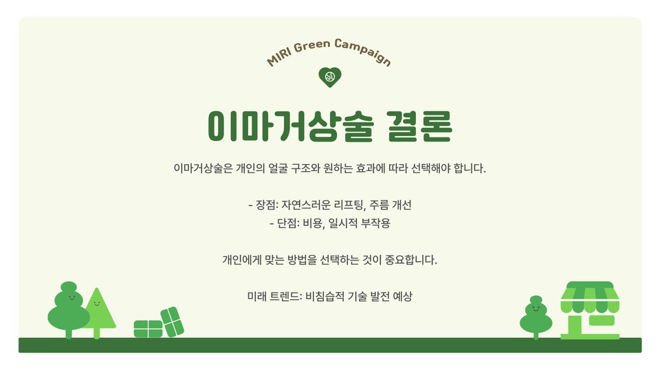 이마거상은 다양한 방법으로 진행될 수 있으며, 각 방법의 특성과 효과를 고려하여 개인에게 맞는 최적의 선택이 필요합니다. 전문가의 상담을 통해 자신에게 맞는 시술을 선택하는 것이 중요하며, 안전하고 효과적인 결과를 얻기 위해 항상 신뢰할 수 있는 병원을 선택해야 합니다. 이 정보를 바탕으로 여러분의 미용 성형 여행이 성공적으로 이루어지길 바랍니다.