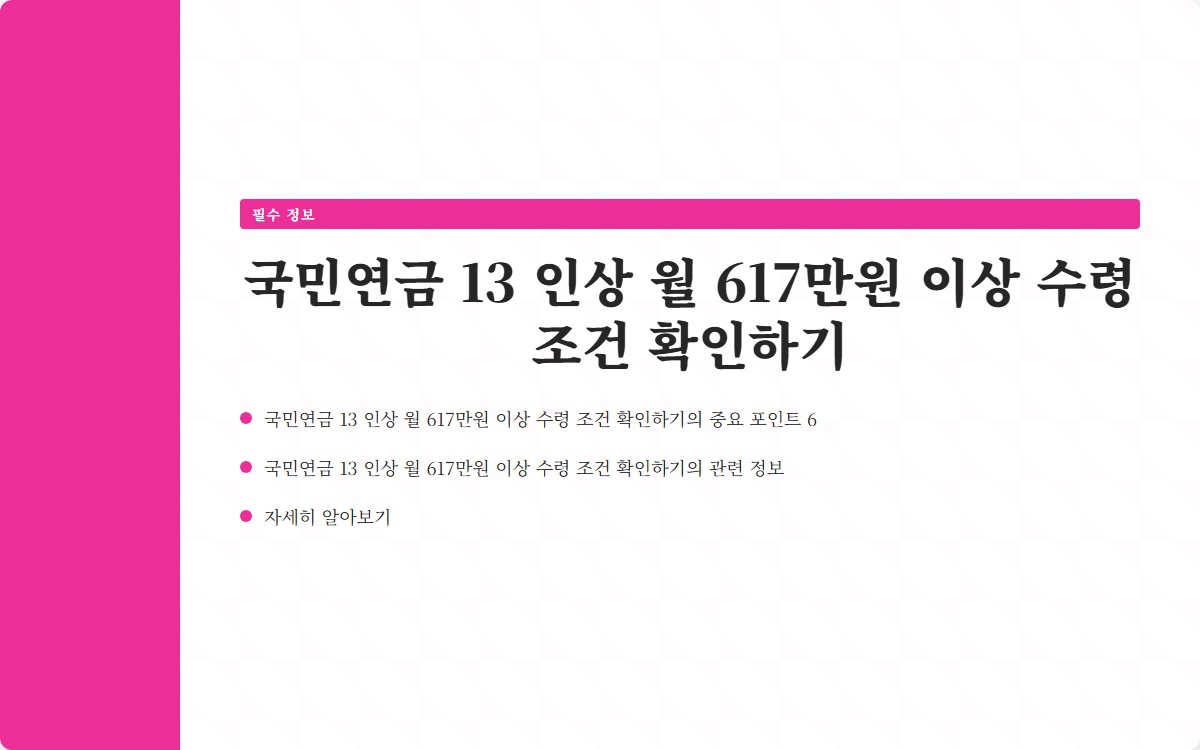 국민연금 13 인상 월 617만원 이상 수령 조건 확인하기