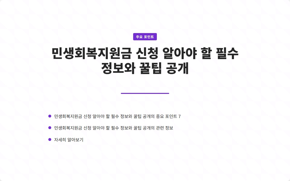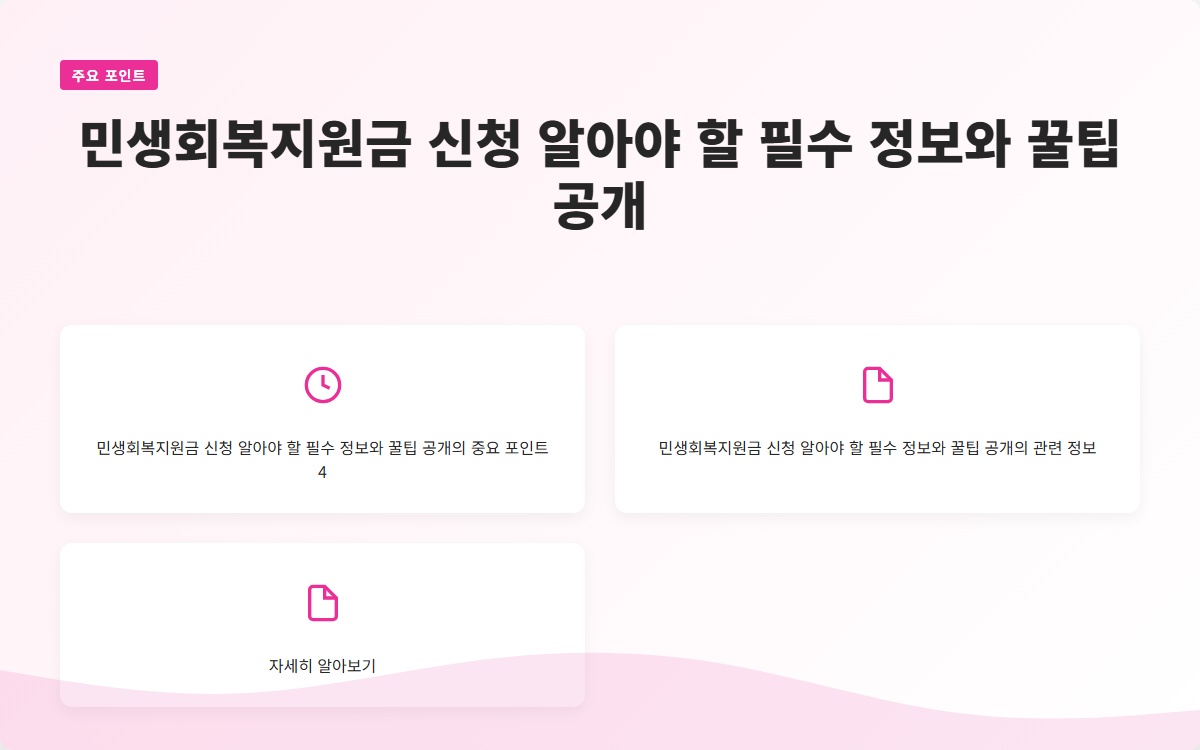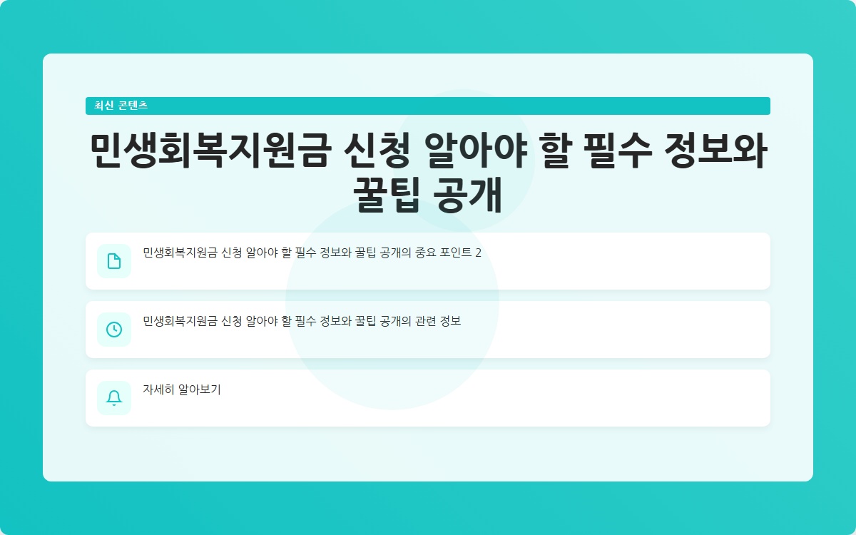 민생회복지원금 신청은 경제 회복을 위한 중요한 정책입니다. 구체적인 정보는 정부의 발표를 기다리며, 미리 준비하는 것이 좋습니다. 정확한 정보로 지원금을 신청하고, 혜택을 놓치지 마세요!