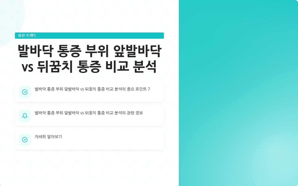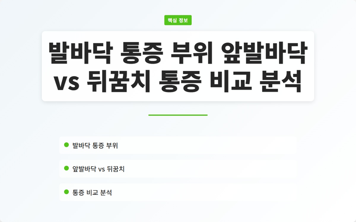 발바닥 통증은 많은 사람들이 겪는 문제입니다. 앞발바닥 통증과 뒤꿈치 통증은 그 원인과 치료 방법이 다릅니다. 이 글을 통해 각 통증 부위의 특성과 관리 방법을 알아보세요! 지금 확인해보세요!