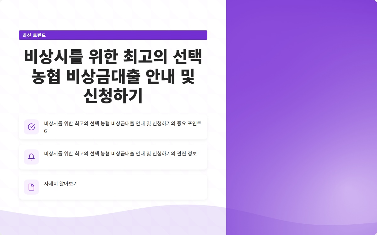 비상시를 위한 최고의 선택 농협 비상금대출 안내