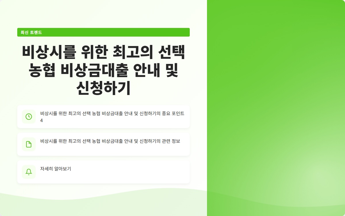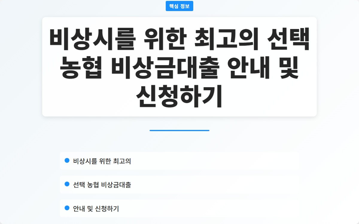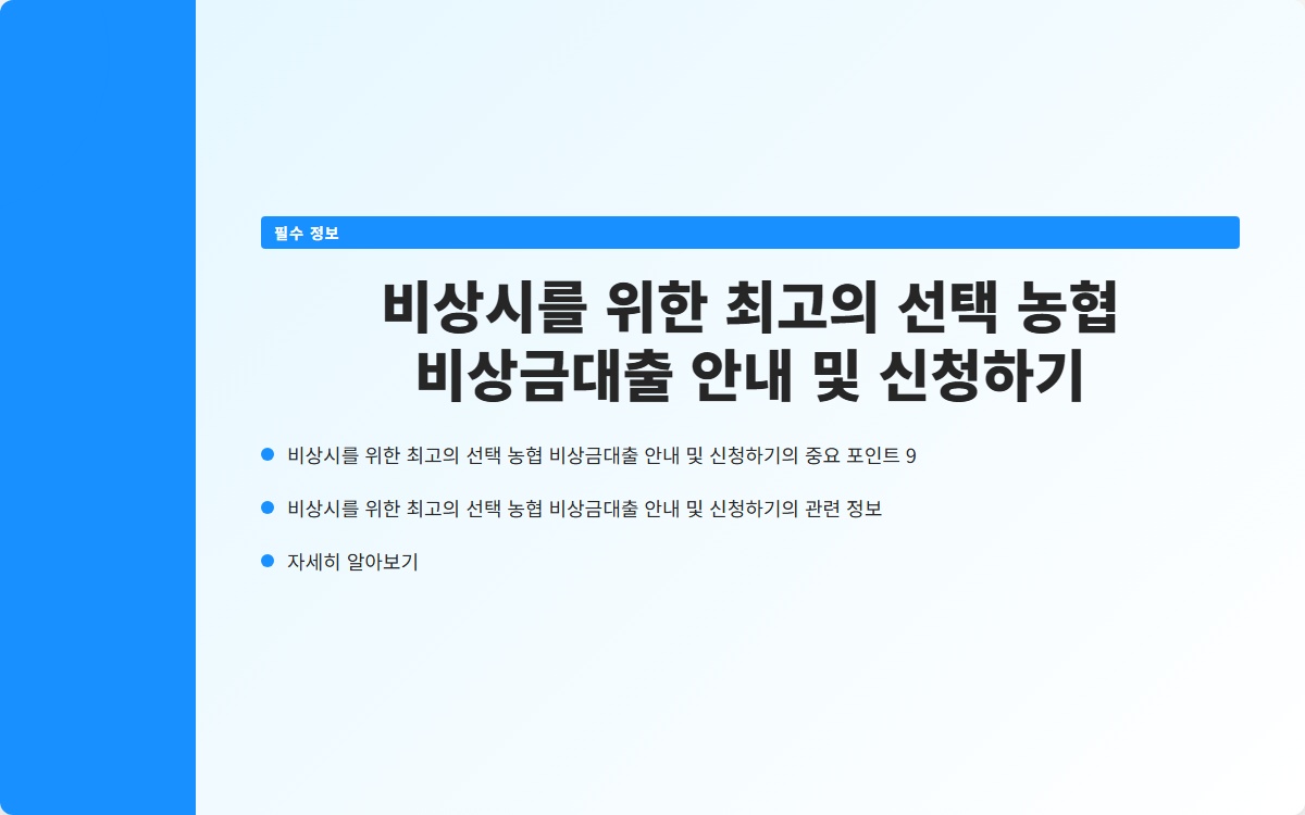 비상시를 위한 최고의 선택 농협 비상금대출 안내