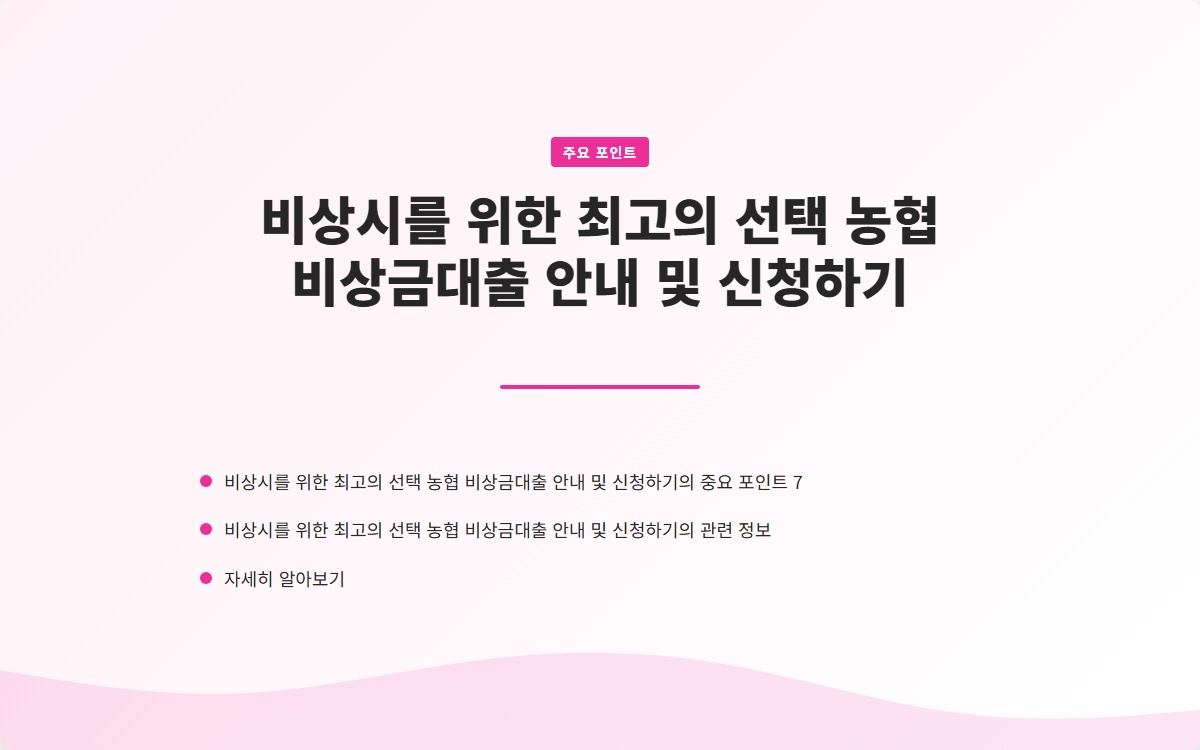 비상시를 위한 최고의 선택 농협 비상금대출 안내 및 신청하기