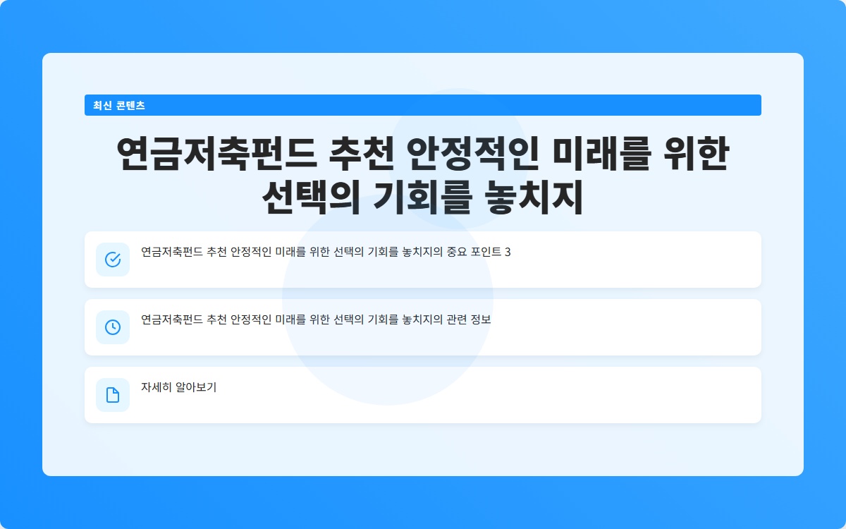 가장 인기 있는 연금저축펀드 추천 신뢰성 있는 정보로 확인하기 바로가기