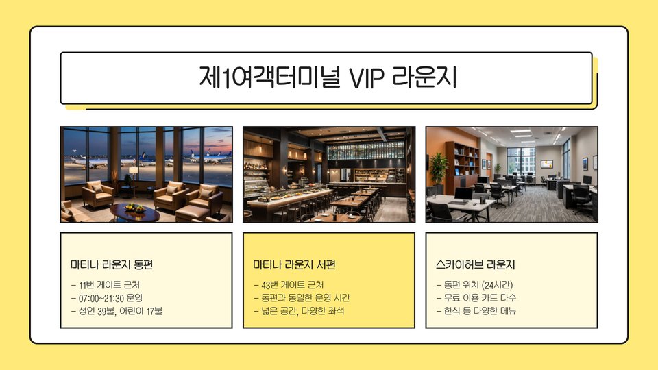 - 인천공항 VIP 라운지는 편안한 공간과 다양한 서비스를 제공