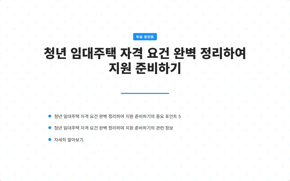 | 청년 임대주택 신청 전 꼼꼼한 준비 필요 (1) | 2025.05.23 |