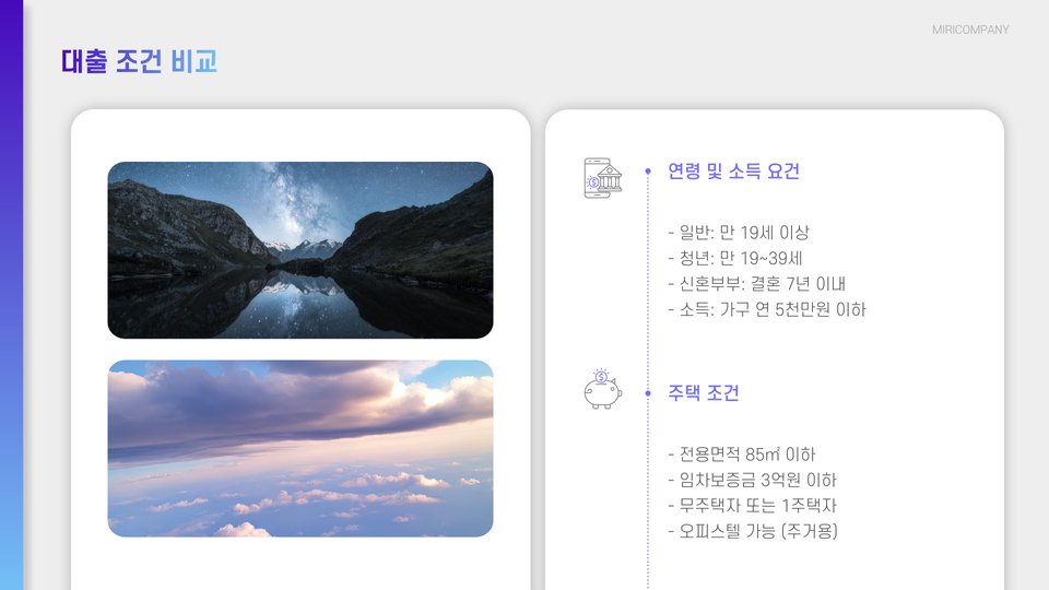 - 대출자 신용에 따라 추가적인 보증 서비스를 활용하면 더 나은 조건으로 대출이 가능합니다.