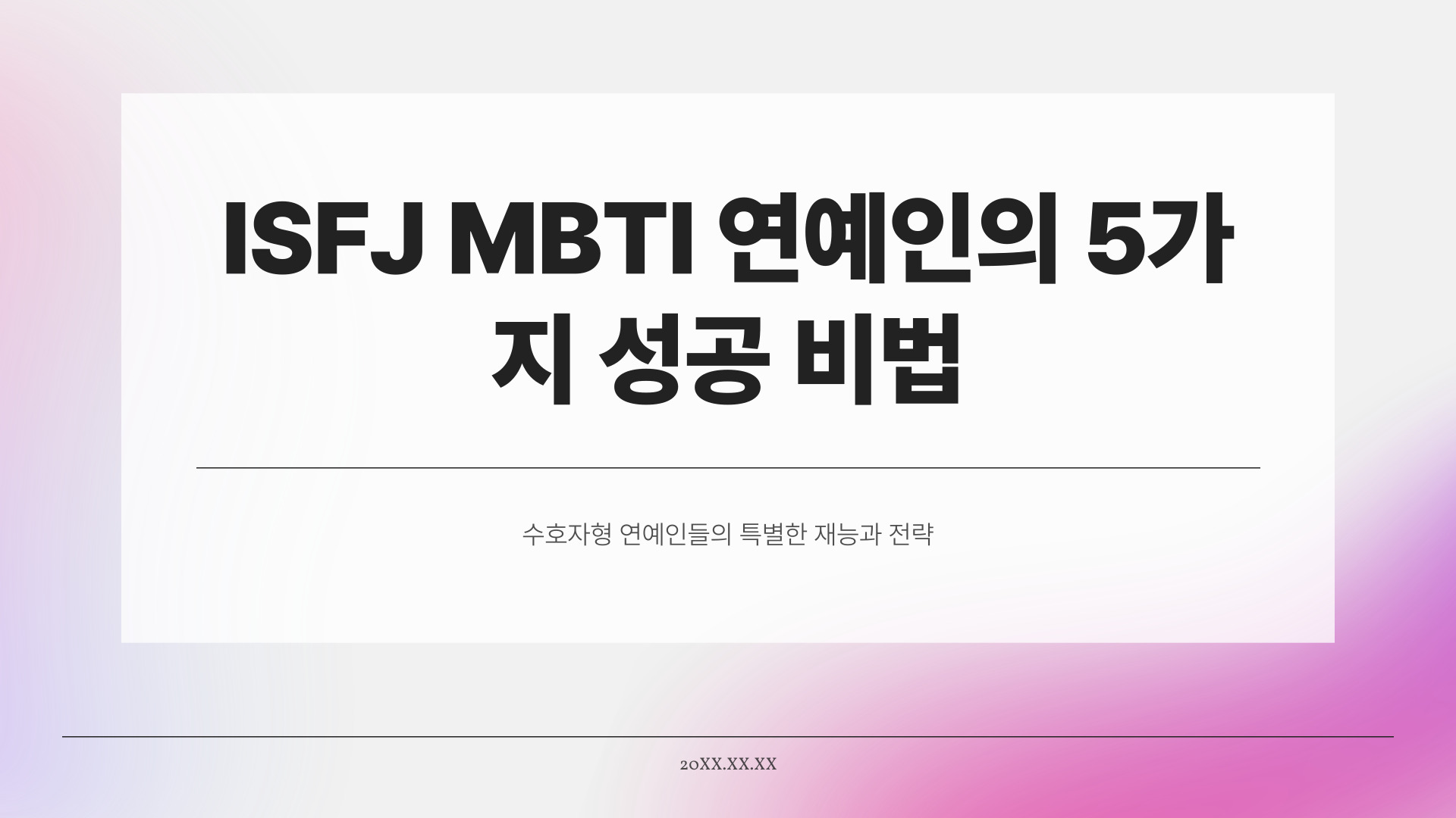 MBTI는 개인의 성격을 이해하는 데 큰 도움을 주는 도구입니다. 특히 ISFJ 유형인 사람들은 대개 조용하고, 배려심이 깊으며, 실용적인 성향을 지니고 있습니다. 이 글에서는 ISFJ 성향이 반영된 유명 연예인 5명과 그들의 성공 비법을 알아보겠습니다. 그들은 어떻게 자신의 성향을 활용하여 성공을 이뤘는지, 그리고 우리에게 배우면 좋을 팁을 제공할 것입니다.