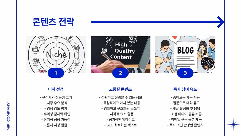 - 양질의 콘텐츠가 필요하며, 많은 방문자를 유도해야 합니다.
