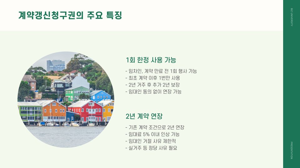 갱신청구권의 가장 큰 장점은 임차인의 거주 안전성을 높여 준다는 것입니다. 이는 장기 거주를 원하는 세입자에게 매우 유리한 조건입니다. 또한, 자산 가치를 높이는 데도 기여할 수 있습니다. 예를 들어, 세입자가 동일한 장소에서 오랜 기간 거주함으로써 커뮤니티와의 연결을 강화하게 됩니다.