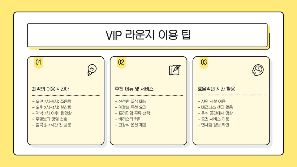 중요 정보: VIP 라운지 이용 자격과 조건은 항공사와 상황에 따라 다를 수 있으니, 사전에 잘 확인하세요.