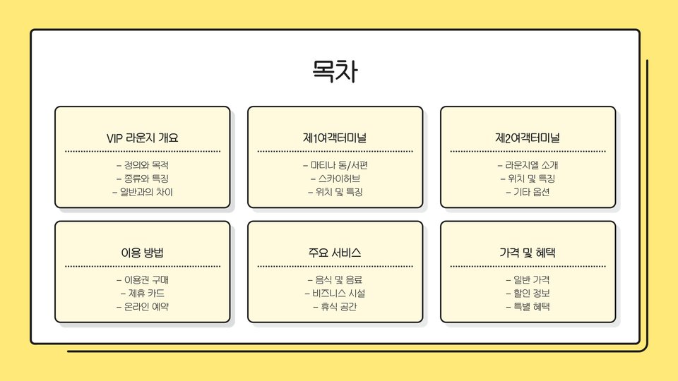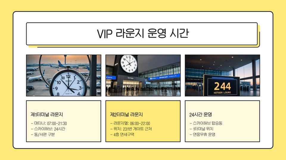 인천공항 VIP 라운지는 여행의 시작과 끝을 더욱 특별하게 만들어주는 공간입니다. 다양한 서비스와 혜택을 통해 더 나은 여행 경험을 제공하며, 고객의 만족도를 높이기 위해 지속적으로 변화하고 있습니다. 여행을 계획할 때, VIP 라운지를 이용해 보시는 것을 추천드립니다.