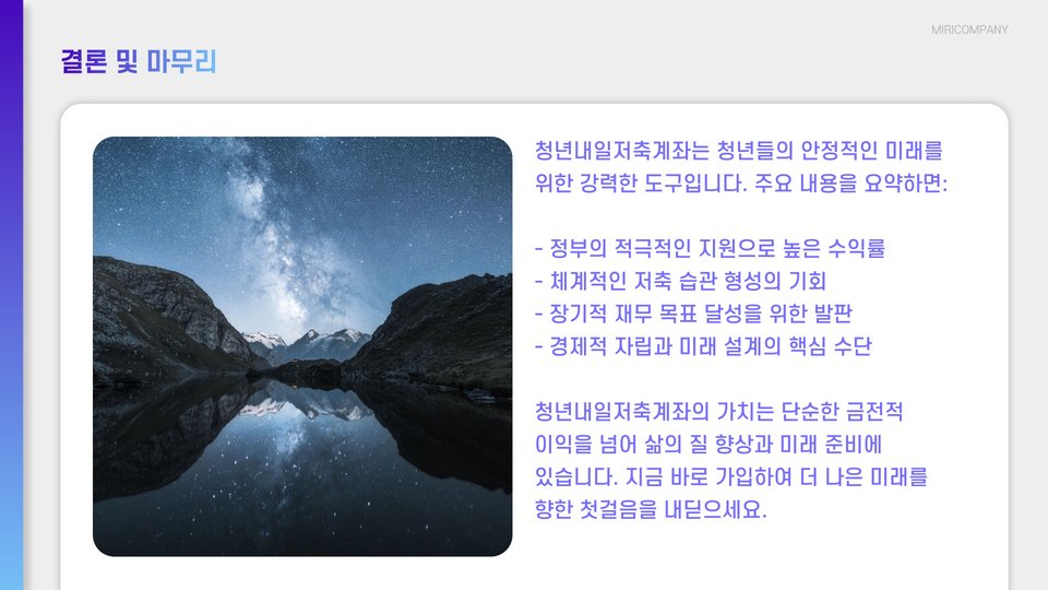 청년내일저축계좌는 청년들에게 미래의 재정적 안정을 가져다주는 중요한 프로그램입니다. 이 계좌를 통해 꾸준한 저축을 실천함으로써 본인이 원하는 삶을 준비할 수 있습니다. 이 기회를 통해 재정적 목표를 세우고 이를 달성하는 경험을 쌓아가는 것은 매우 의미 있는 일입니다.